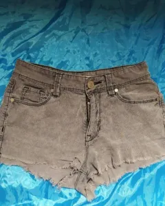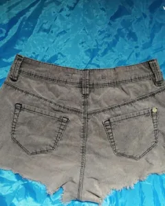 Short corto, tipo gamusa color gris, tiro bajo, sin ningún detalle, muy bonito.