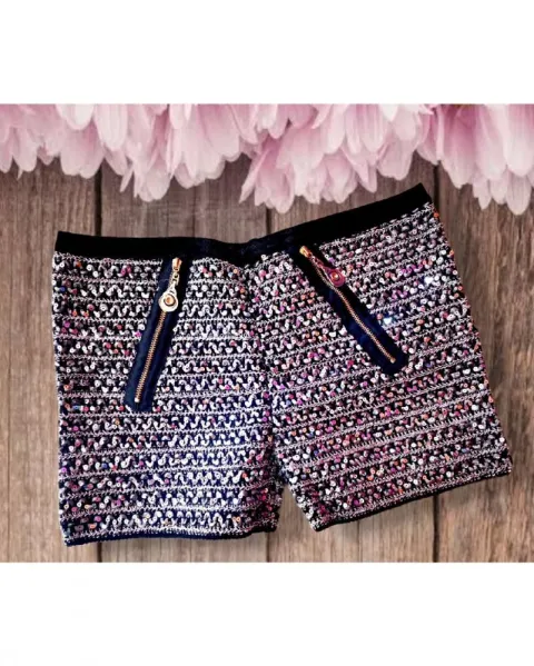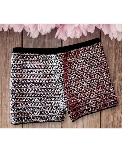 MINI SHORT DE LENTEJUELAS NEGRO CON GRIS