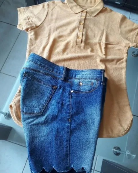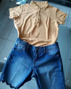 Outfit Short y Playera Polo. Shorts de mezclilla Nons'Top, Talla -7Playera polo color mostaza T-ChO por separado!!