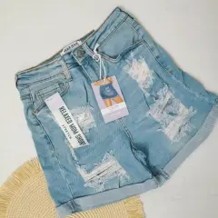 Relaxed Mom Shorts. De la marca Wax Jeans, excelente calidad de la tela, acabados y diseño. La tela es strech, arma padrisimo. Es un short muy cómodo de tiro alto. Se ve moderno por su diseño con rotos. Color azul claro mezclilla. No te arrepentirás. Estrénalo!