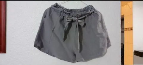 Short gris super fresco, tela delgada pero no sé transparenta, se ajusta con unos cintos y tiene bolsitas 🩶