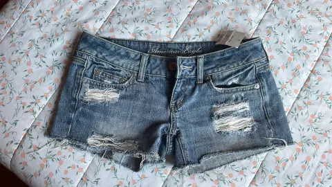 Short. Shorts Mujer Mezclilla Rasgados de Verano con Bolsillos, talla 5, corte a la cadera