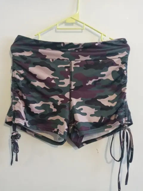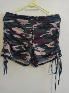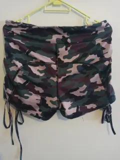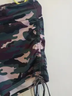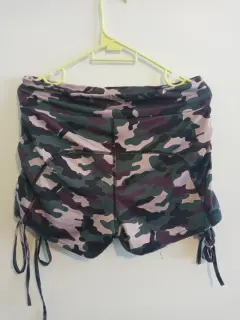 Bonito short camuflaje, de licra con tiras ajustables en los laterales, puedes hacerlo del largo que tu quieras.