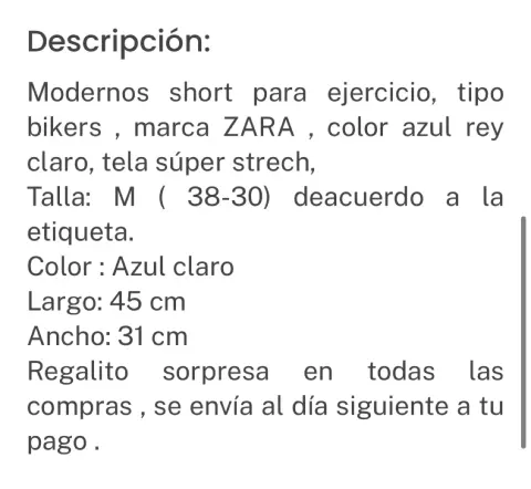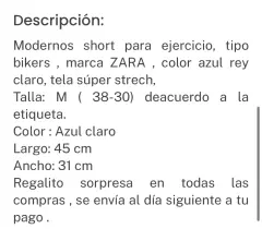 Lindo short tipo biker Zara , color azul.Talla :M (28-30 ) según etiqueta .