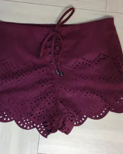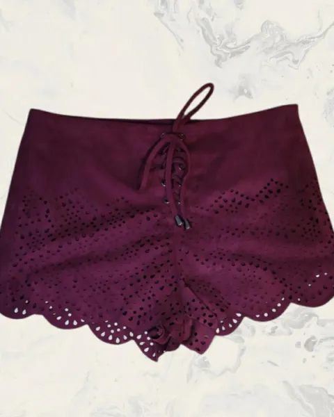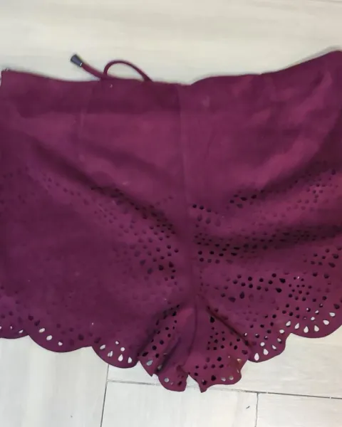 Short color vino con agujetas. Material Suede. Ajuste perfecto. Shorts de cintura media. Usado 2 veces, lavado una vez, sin manchas ni signos de desgaste, tiene forro, dobladillo festoneado al final. MedidasCintura 80cm de circunferenciaLargo 28 cm