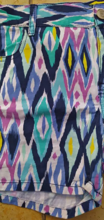 Short colorido de grecas. Hermoso short colorido de grecas, 100% algodón. Marca est 1989 place, talla 14.MEDIDASCintura 82 cm.Contorno cadera 94 cm.Tiro 23 cm.