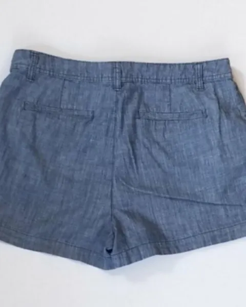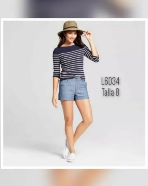 Hermoso short azul, aparente mezclilla, la tela es agradable nada tiesa, bolsillo traseros y delanteros, botón y cierre delantero.Medidas largo 36.5, contorno pretina 81cm