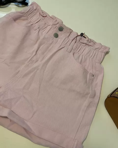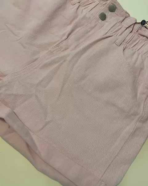 Hermoso short en color rosa claro, resorte en cintura, botones y cierre. Bolsas delanteras y traseras, la mezclilla es ligera. Es muy cómodo.