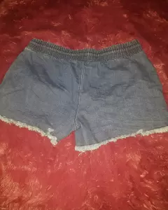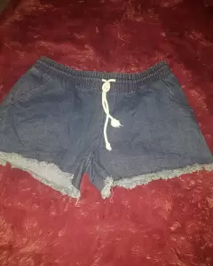 Short de mezclilla. Short de mezclilla corto. Con resorte y lazo en cintura, tiene bolsas a los lados El color del short es del color mezclilla del elastico de la foto 3. De cintura mide 42. De cadera 53 y de largo 31 cm. Es stretch
