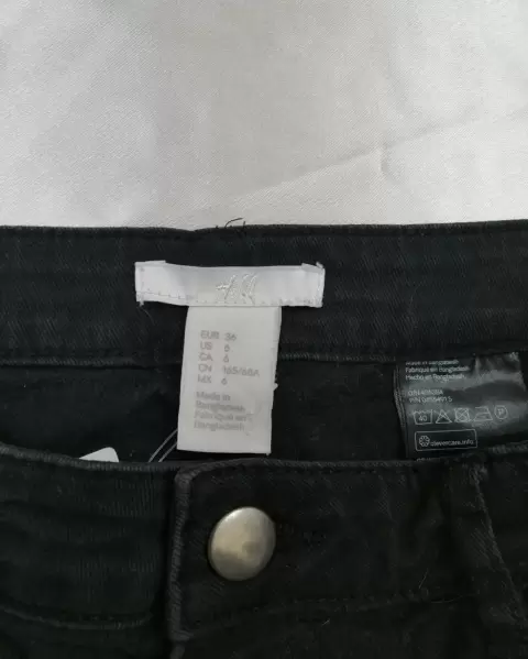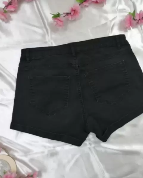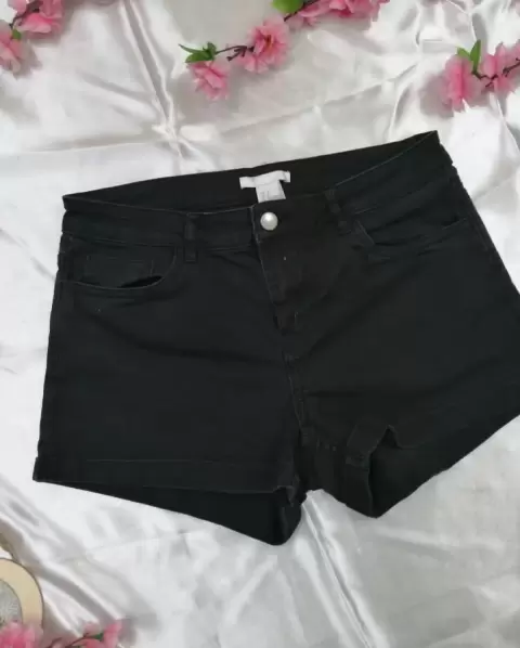 Short de mezclilla negro H&M. La mezclilla es stretch, estira poco.Talla 6▪️Cintura: 36▪️Largo: 26cm.