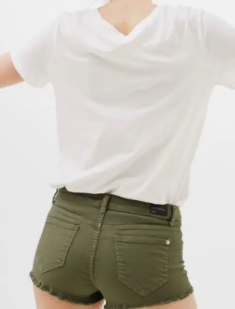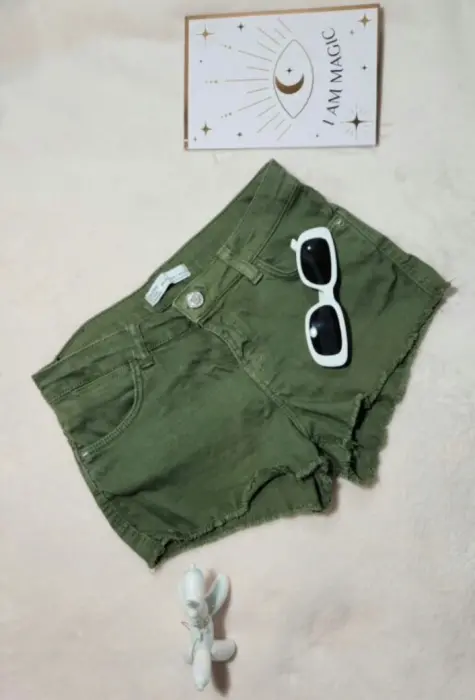 Short verde militar cortito, precioso para ir a la playa, marca BSK es talla 26 pero viene chico.Largo: 32 cmCintura: 66 - 74 cm