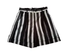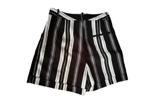 Hermoso short de tela satinada gruesa, no transparenta, un solo uso, tiene bolsas y se ve muy elegante, lineas verticales blanco y negro, estética de 10!
