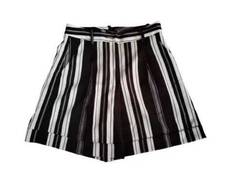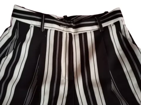 Short de vestir Zara. Hermoso short de tela satinada gruesa, no transparenta, un solo uso, tiene bolsas y se ve muy elegante, lineas verticales blanco y negro, estética de 10!