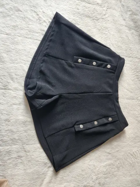 Short formal, color negro, con botones delanteros como vista, trae resorte en la cintura para un ajuste perfecto, tela fresca.
