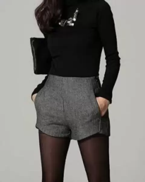Short gris de lana. Lindísimo short gris con ojales para cinturon en tono Oxford, muy lindo para llevar con tu playera o incluso blusa favorita por la tela qje tiene da un ligero toque de formalidad.