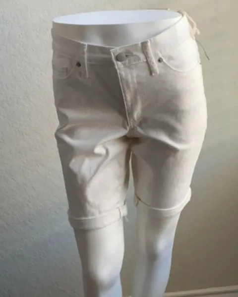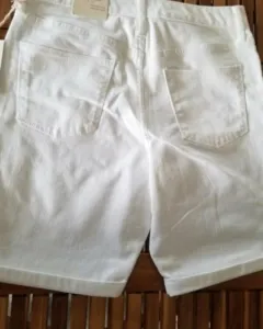 Hermoso short bermuda color blanco, de mezclilla que molde a la perfección la figura, estira y es muy confortable a la piel, no es una tela tosca.Largo 44cm, Contorno pretina 66cm