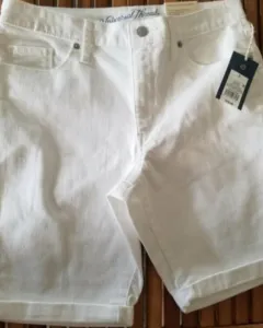 Short largo blanco. Hermoso short bermuda color blanco, de mezclilla que molde a la perfección la figura, estira y es muy confortable a la piel, no es una tela tosca.Largo 44cm, Contorno pretina 66cm