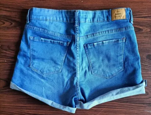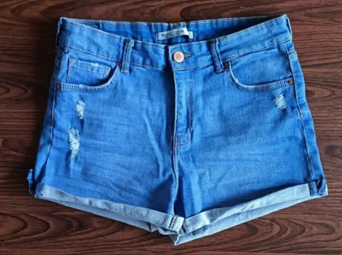 Short de mezclilla,con las partes de abajo dobladas,puesto solo 1 vez y en perfectas condiciones