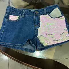 Short mezclilla con lentejuela. Hermoso short para niña con lentejuela le da un toque increíble al short