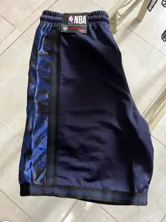 Short deportivo para básquet marca NBA-talla M de niño Azul marino y detalles color azul clarBolsas a los costados Largo 49 cmPara niño o niña de 10 a 12 años