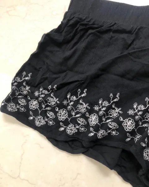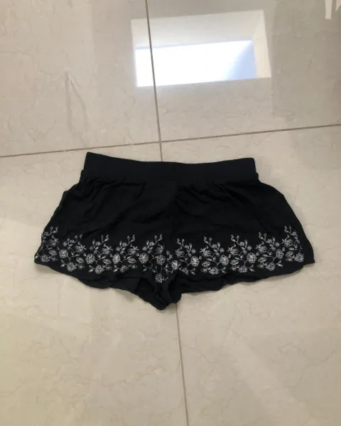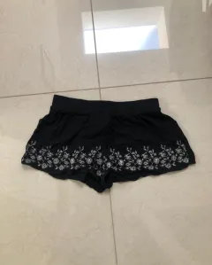 Short negro con bordado en la parte de enfrente, super fresco y comodo, tiene resorte en la parte de arriba, dice talla L, pero queda talla XS-S, NUEVO Y CON ETIQUETA
