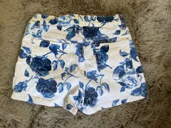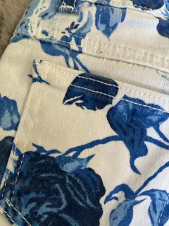 Short de mezclilla blanco con estampados azules, para niña talla 4-5, es Perfecto estado y con cubra ajustable en la cintura