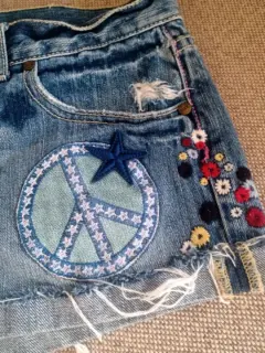 Padrísimo short mezclilla con preciosas aplicaciones talla (6) impecable es usado pero en excelentes condiciones
