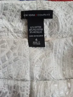 Short con detalles plateados, con bolsas delanteras y traseras, talla 4 (esta amplio) completamente nuevo, marca NY&Co.