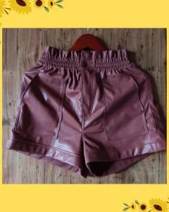 Short polipiel color marrón ladrillo , con bolsillos delanteros y traseros