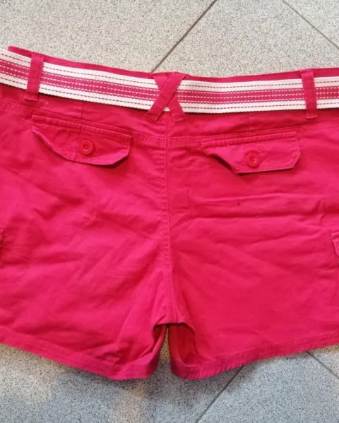 Short color rosa mexicano con cinturón blanco con rosa. Talla medina. Tiene 2 bolsas a los lados y dos al costado con botón.MedidasCintura 45 cmLargo total 37 cmLargo del tiro 24 cmCadera 49 cm