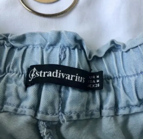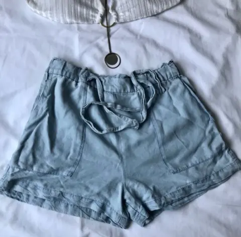 Short stradivarius. Short playero, azul cielo, con resorte en cintura, y también se amarra, bolsas en costado