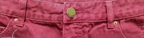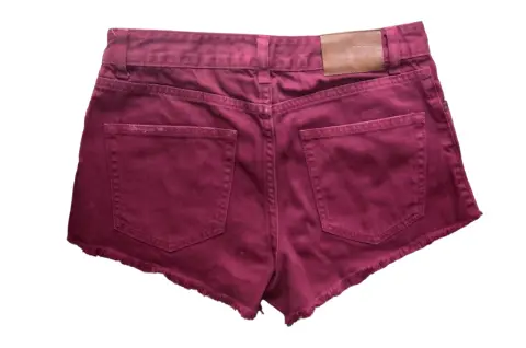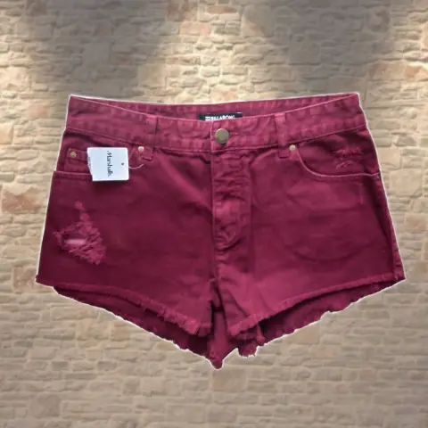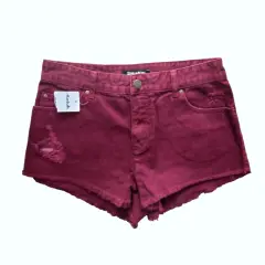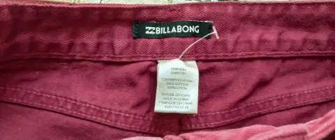 Hermoso short vino de mezclilla, marca Billabong, talla 26. 100% algodón. Muy ligero y fresco para el calor.Contorno cintura: 72 cm.Contorno cadera: 90 cm.Tiro 23 cm.
