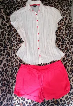 short y blusa. bonito short y camisa para dama en perfecto estado,el short es talla M y la camisa es chica,el short lleva tiras y va flojo