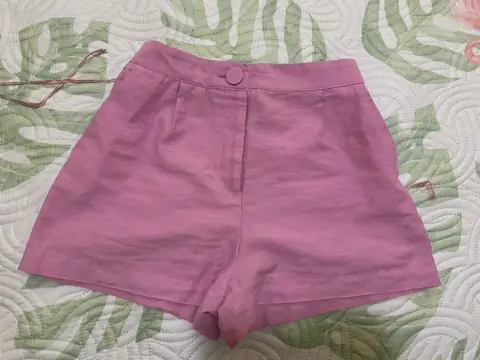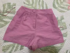 Short marca ZARA, talla chica (26) color rosa pastel, tela fresca con mezcla de lino.