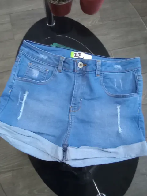 Shorts 🩳. De mezclilla strechTalla 13Llega a la caderaSin ningún detalleLa.mezclilla es fresca y suave