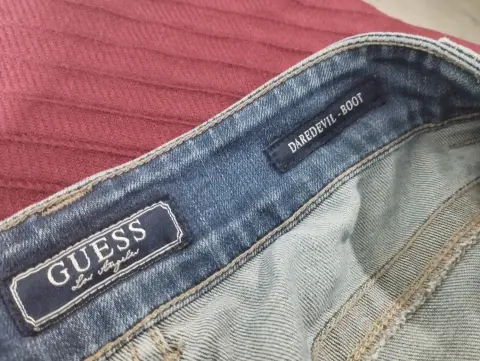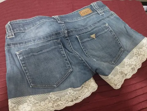 Shorts. Shorts Guess, entallados, mezclilla, con cierre en buen estado y botón, encaje blanco en la.parye de abajo