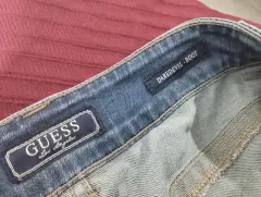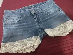 Shorts Guess, entallados, mezclilla, con cierre en buen estado y botón, encaje blanco en la.parye de abajo