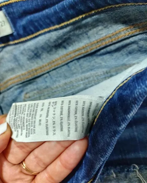 Talla 27 trae strech, corte a la cadera y mide 40 cm, de cadera 44 cm, de largo 25 cm.