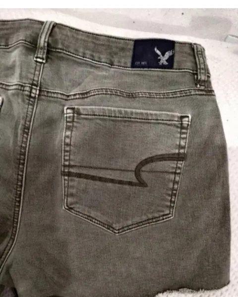 Shorts American Eagle talla M. Shorts de mezclilla en talla 8 en color verde militar sus medidas en cintura 39cm, cadera 44cm, largo total 36cm sin detalles