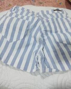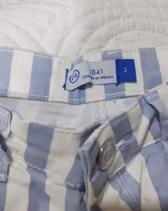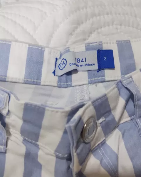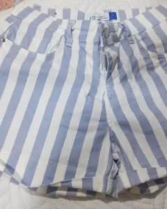 Short de rayas, es de la marca de C&A, solo lo lavé, nunca lo use y cuando me lo probé, ya no me quedaba 😭Es talla 3, la tela no estira, es tipo mezclilla pero delgada, es exacta, tiene un pequeño doblez.