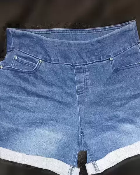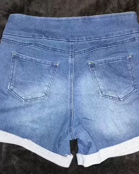 Shorts de mezclilla azul marino con bolsas funcionales delanteras y traseras lo puedes hacer tan corto como lo desees es chico pero estira bastante y queda hasta grande!!!
