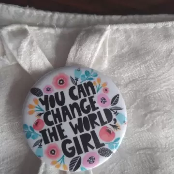 Corte bajito, color ivory, con tela drapeada y pin "you can change the world girl" 🌺