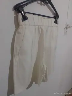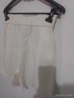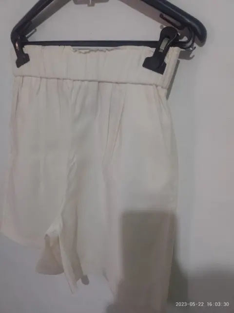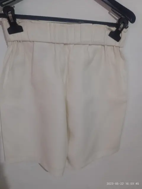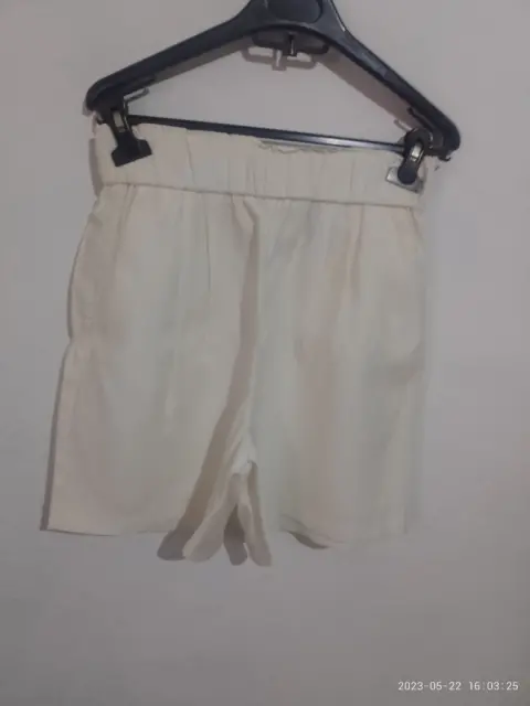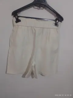 Shorts color crema de vestir. Shorts de color crema con bolsas en los laterales y resorte en cintura talla chica con medidas 33 de cintura y de cadera 50cm y de largo74