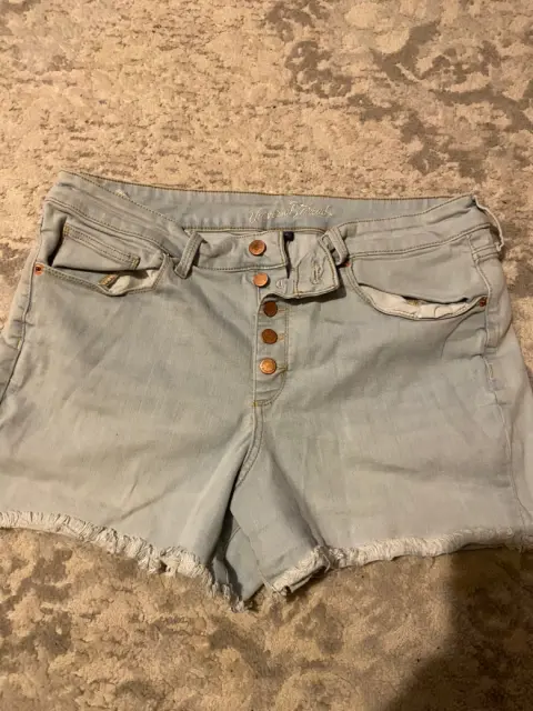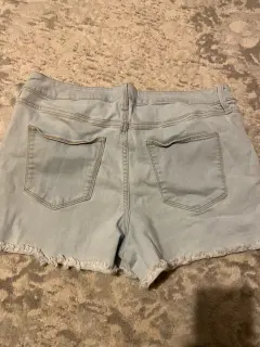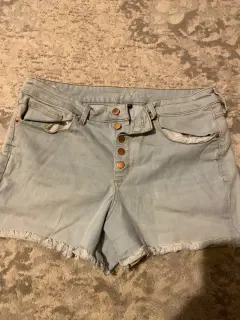 Shorts cortos en mezclilla duradera ajustables al cuerpo en excelente estado talla 14 o XL o G , cómodos y de tiendas americanas