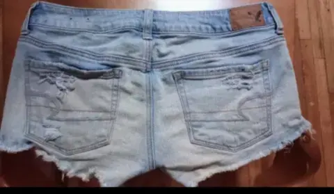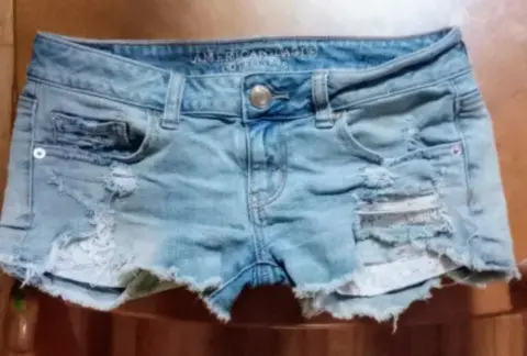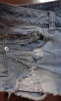 Shorts de mezclilla. Short de mezclilla rasgado con detalles de encaje en bolsillos talla mediana sin detalles