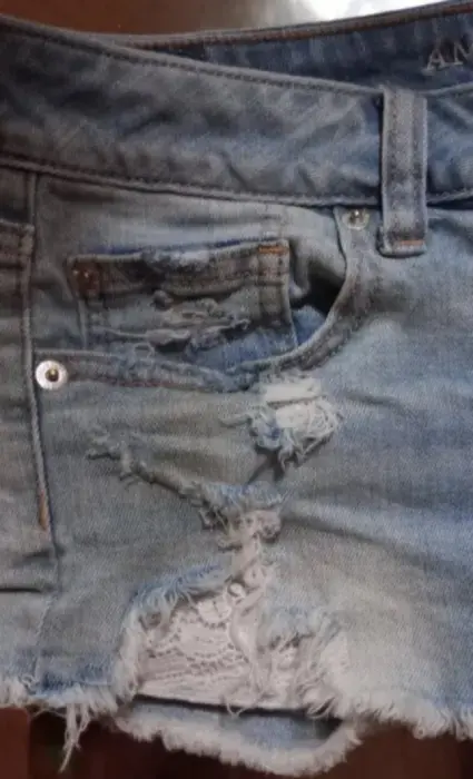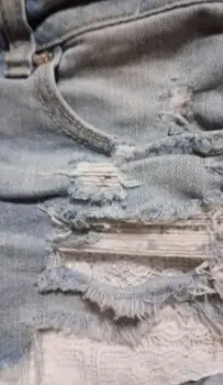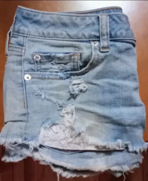 Short de mezclilla rasgado con detalles de encaje en bolsillos talla mediana sin detalles