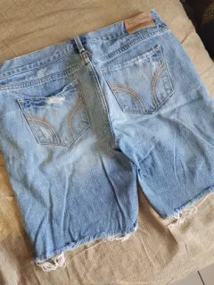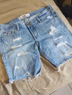 Shorts de mezclilla. Shorts de mezclilla, poco uso, rasgado, talla 27, marca Hollister, a media pierna.
