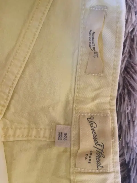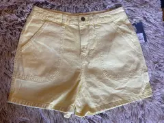 Short tiro alto de mezclilla color amarillo suave, NO tiene estrech Medidas cintura 39cm, cadera 50cm y largo 41 talla 6/28
