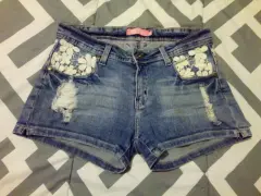 Shorts de mezclilla t-7 con apliques en encaje muy bonito para estos calores