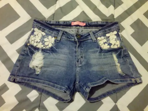 Shorts de mezclilla t-7. Shorts de mezclilla t-7 con apliques en encaje muy bonito para estos calores